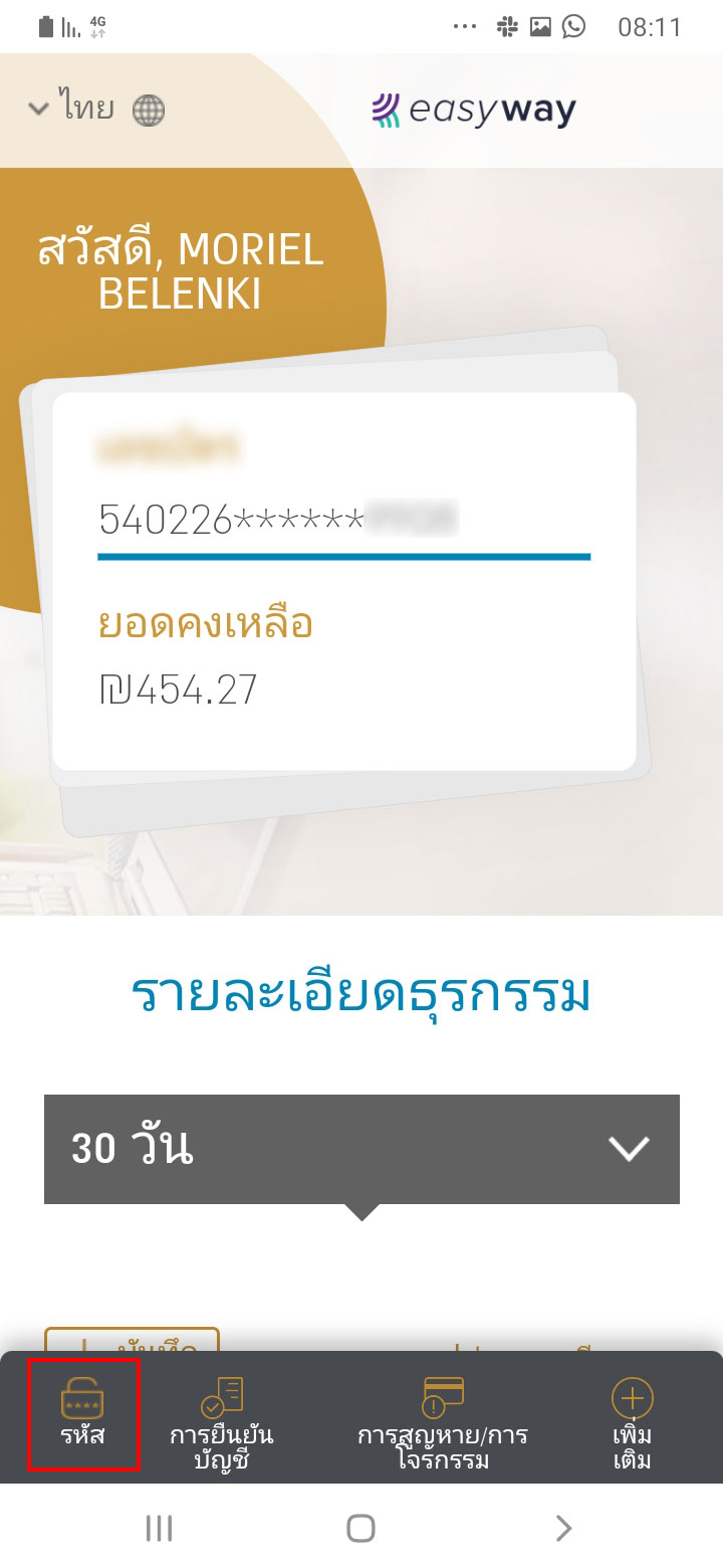 หลังจากการเปิดใช้งานบัตร คุณต้องเช็ครหัสบัตร