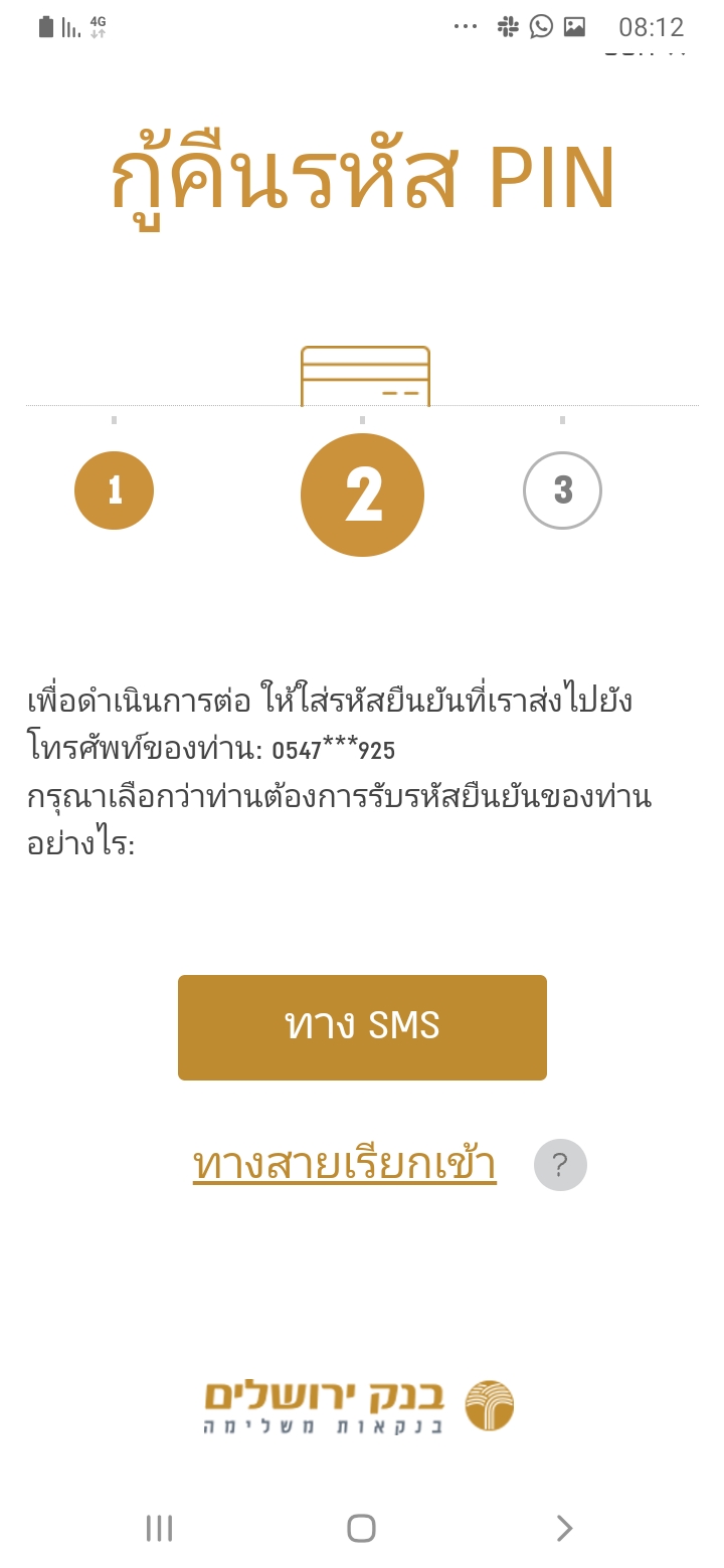 คลิ๊กที่ลิงค์เพื่อเปิดเว็ปไซด์ธนาคารเยรูซาเล็ม คลิ๊ก”ใส่โค้ดตัวเลขจากข้อความ”เพื่อเข้าสู่ระบบของคุณ