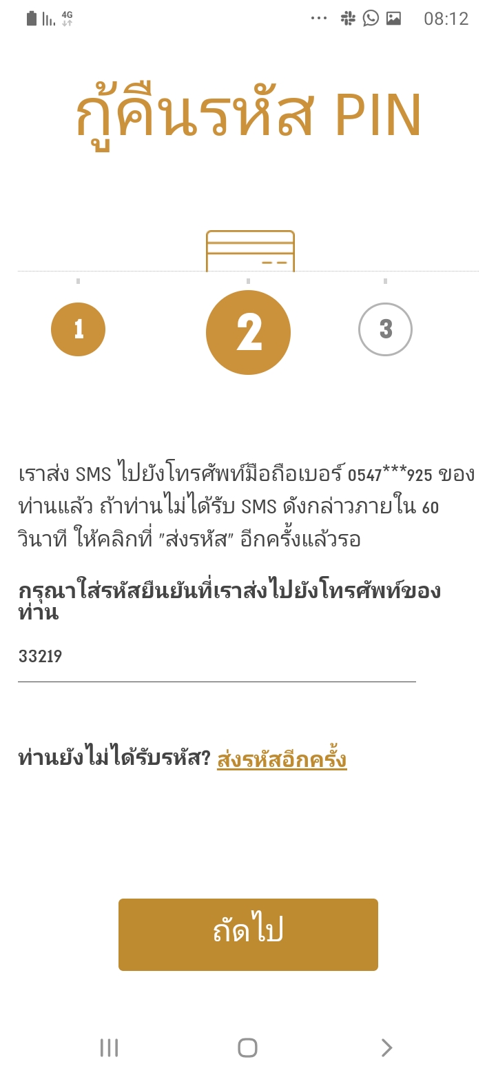 2. ใส่โค้ดตัวเลขที่ได้รับจากข้อความ