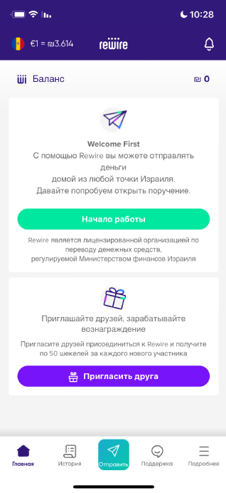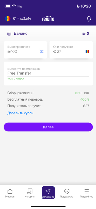 На вкладке «Отправить деньги» введите сумму для отправки (в шекелях или валюте вашей страны). Вы увидите, сколько именно получите по текущему курсу. Нажмите «Далее», как только будете готовы выполнить перевод.