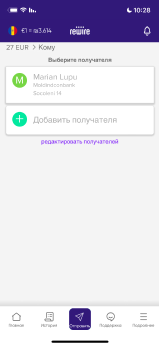 Выберите ранее указанного получателя или нажмите «Добавить получателя» , чтобы добавить нового.