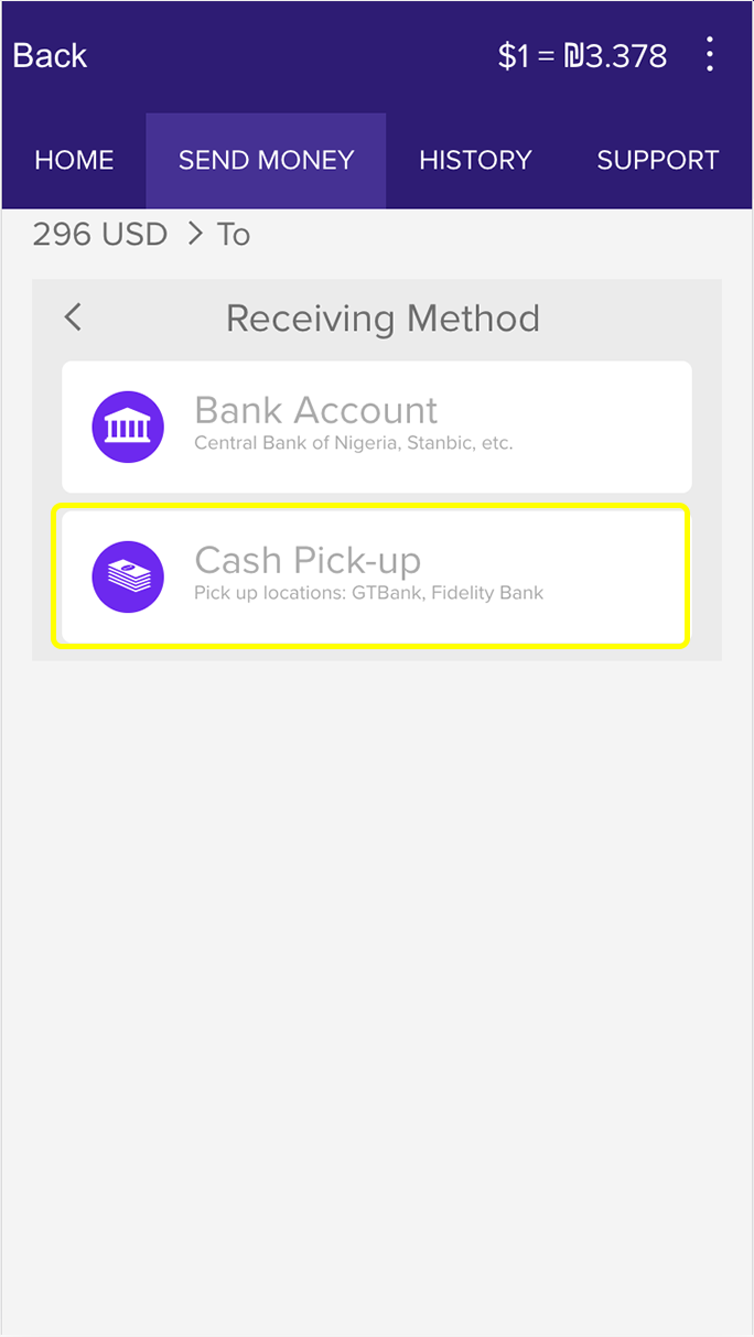 These steps will guide you to send money from Israel to Nigeria instantly with Cash Pickup via any branch of GTBank or Fidelity. The money will be received in NGN.