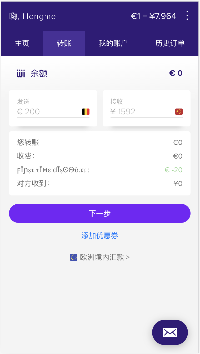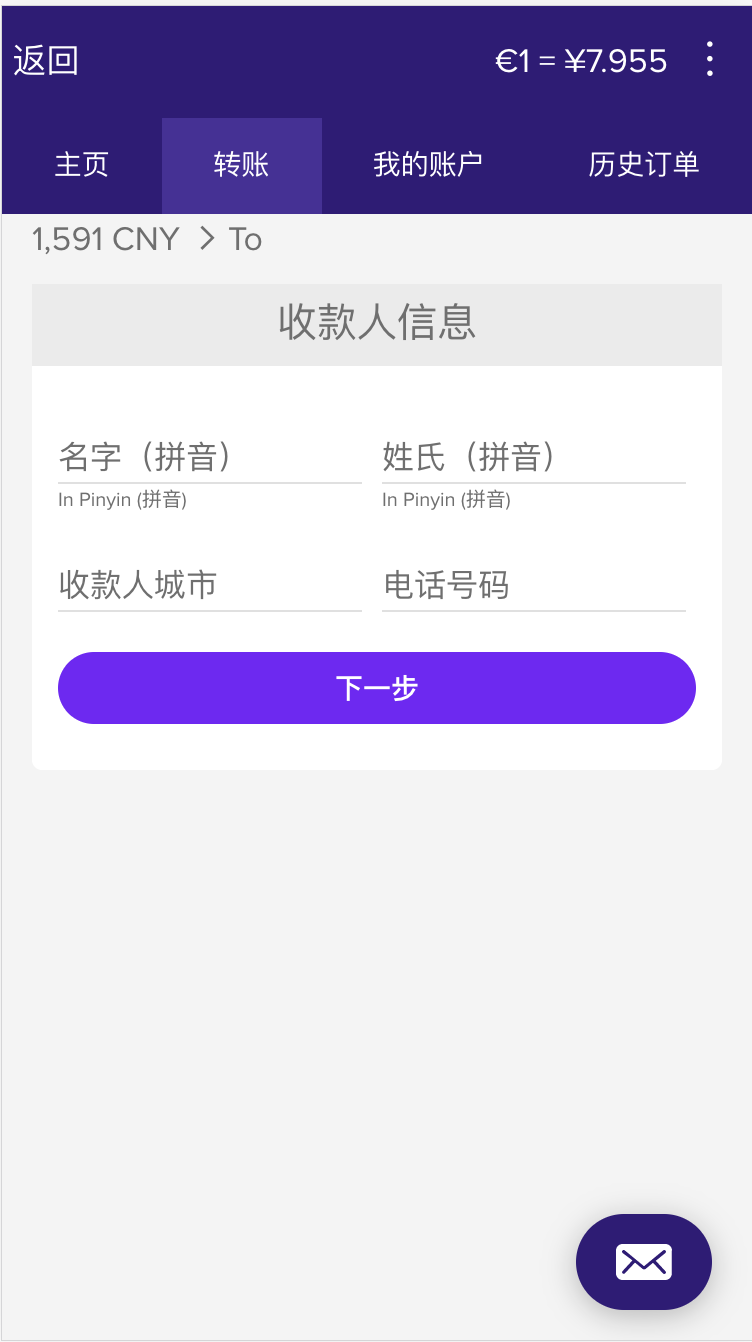 在计算器中输入您要发送的金额。 您将看到根据今日汇率将确切收到多少。 准备就绪后,单击“下一步”。