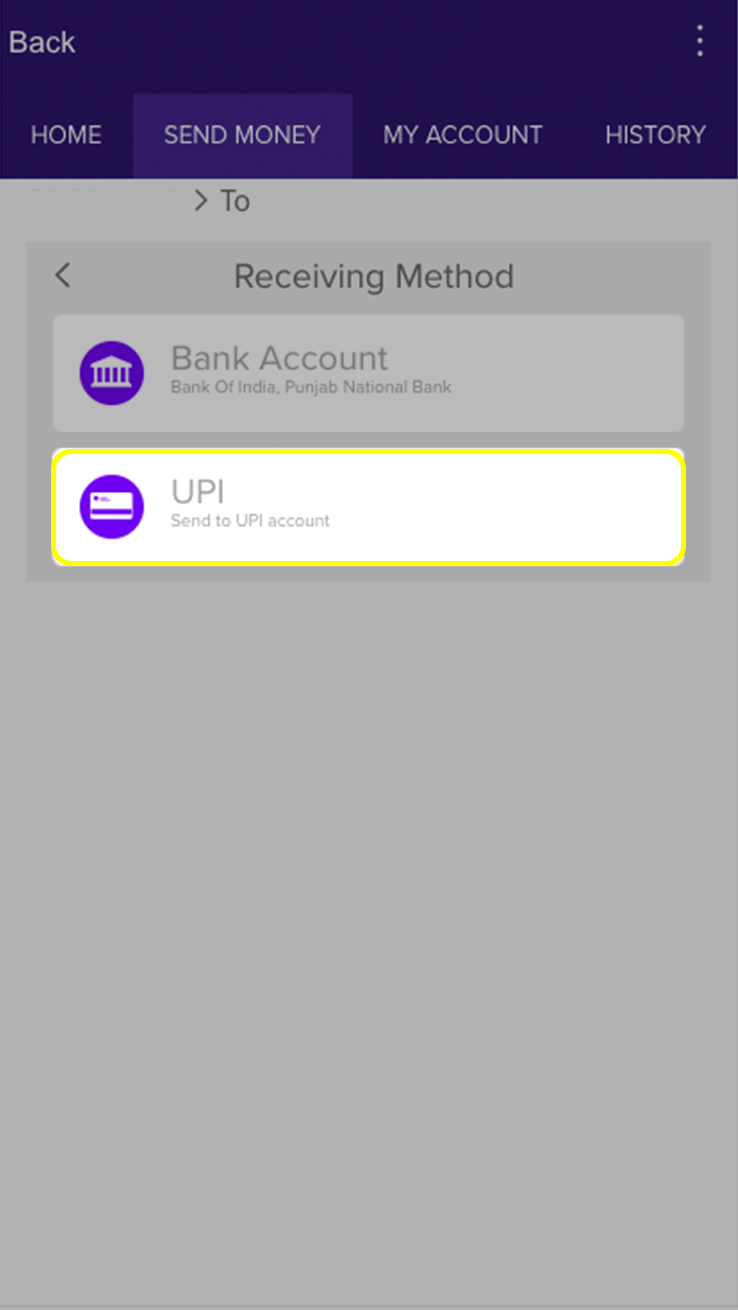 Select "UPI" as receiving method.