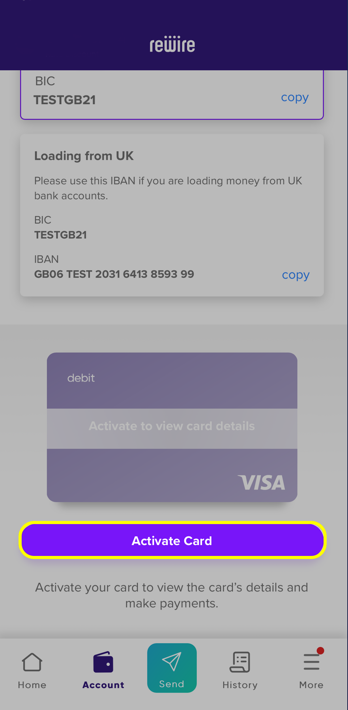 Once the IBAN is processed you can click "Activate Card".
