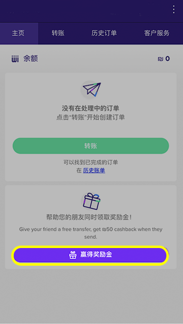 一旦您朋友点击您的个人链接,即可连结到注册页面,并同时获得首次免费转帐。一但您的朋友成功首笔汇款至少 ₪500,在三个工作日内您即可获得₪50现金回馈到您的Rewire帐号里