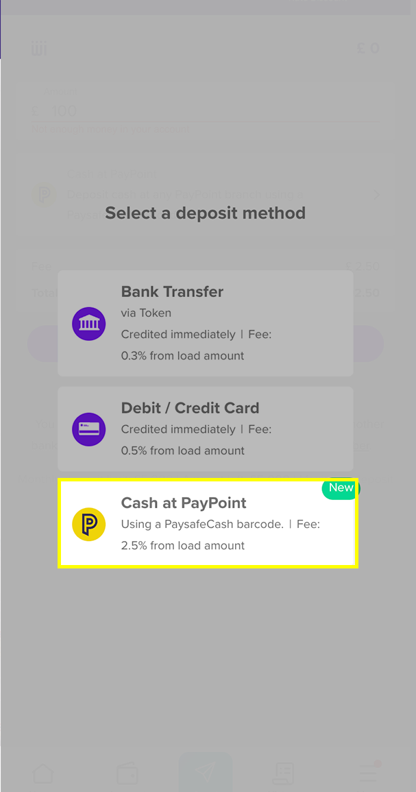 You will see the different options of loading money. Click on "Cash at PayPoint"