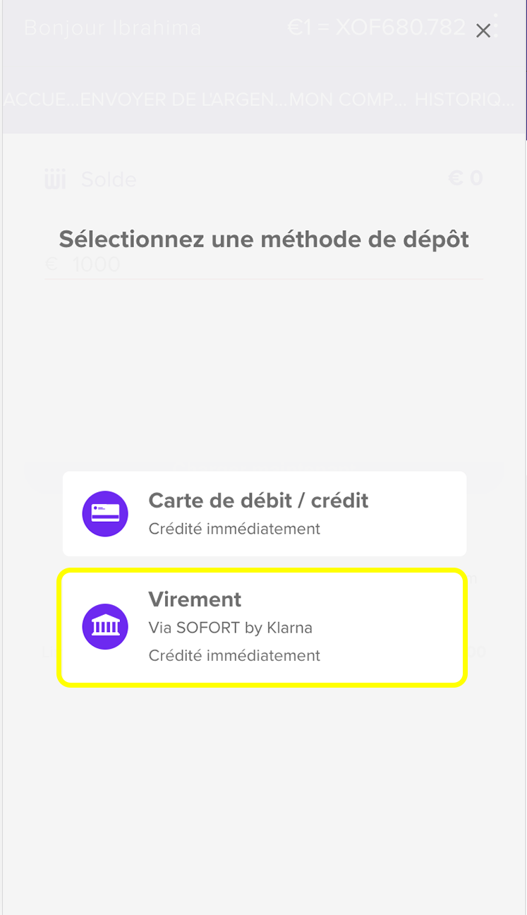 Sélectionnez l'option Virement bancaire