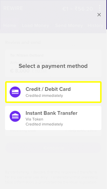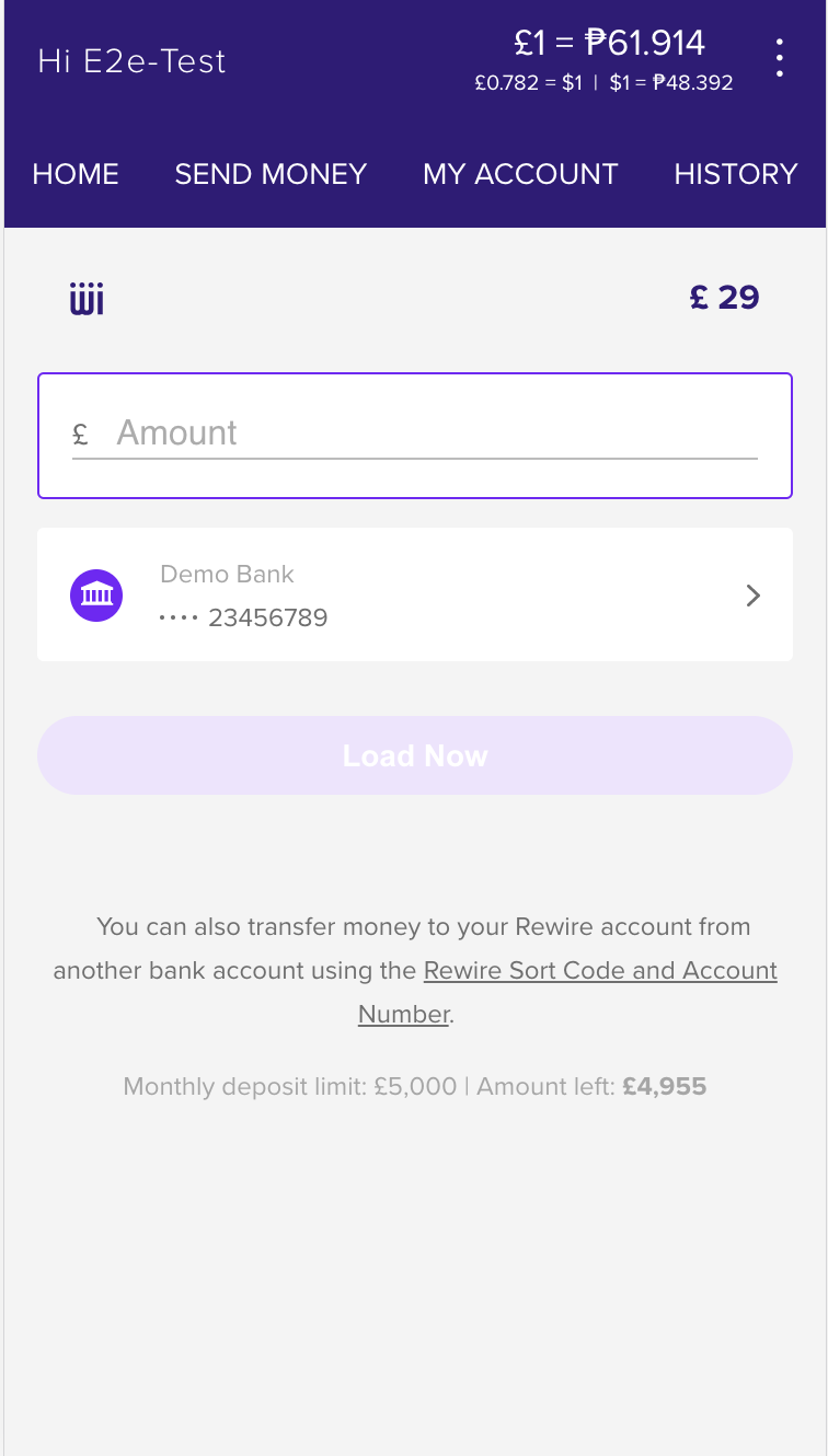 These steps will guide you to load money into your Rewire online bank account. You have a few options how to load money Credit Card, Bank Transfer and Transfer from your Bank or deposit via cash(click on an option to skip straight to their guide) . Once you have a Balance, you can send money abroad, locally and use the same balance for your Rewire MasterCard debit.