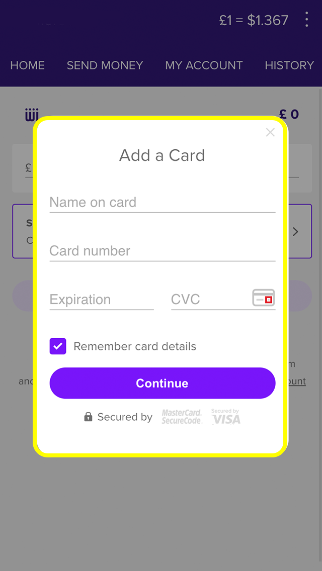 For your convenience your card details can be saved for next time so you will simply be able to select the past account used to load.