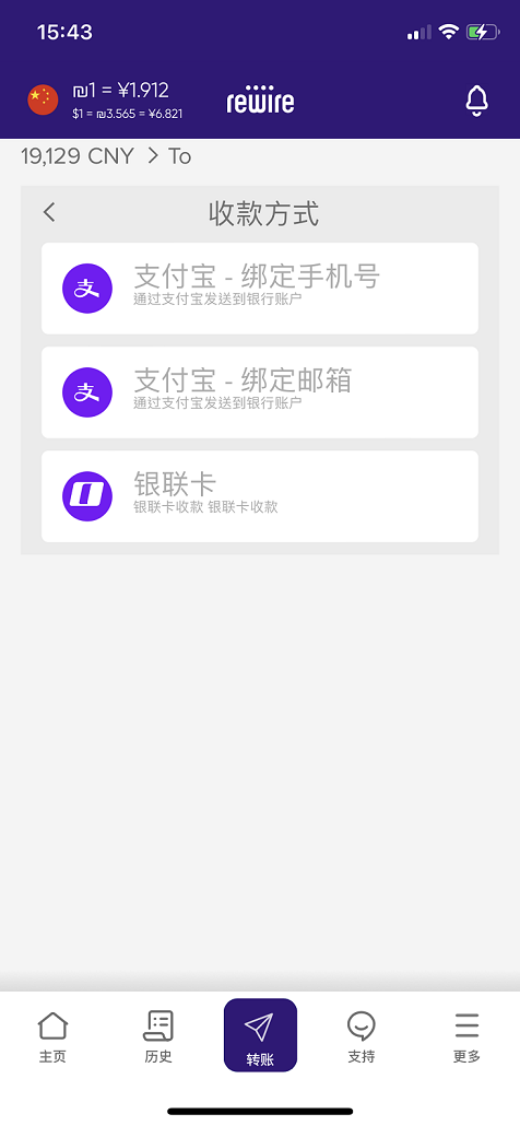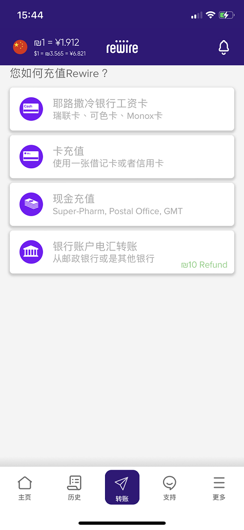 现在您要选择如何在以色列支付这笔汇款。 请选择耶路撒冷银行工资卡(Rewire瑞联卡)支付。