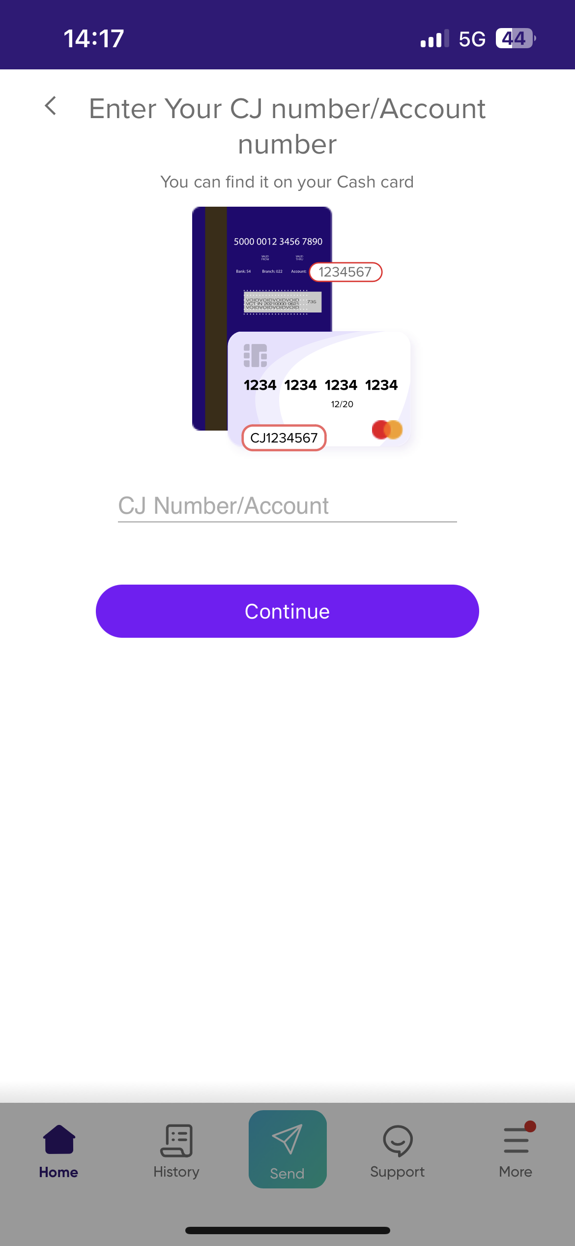 Type your CJ number found on the bottom left of the card and click Confirm to continue.