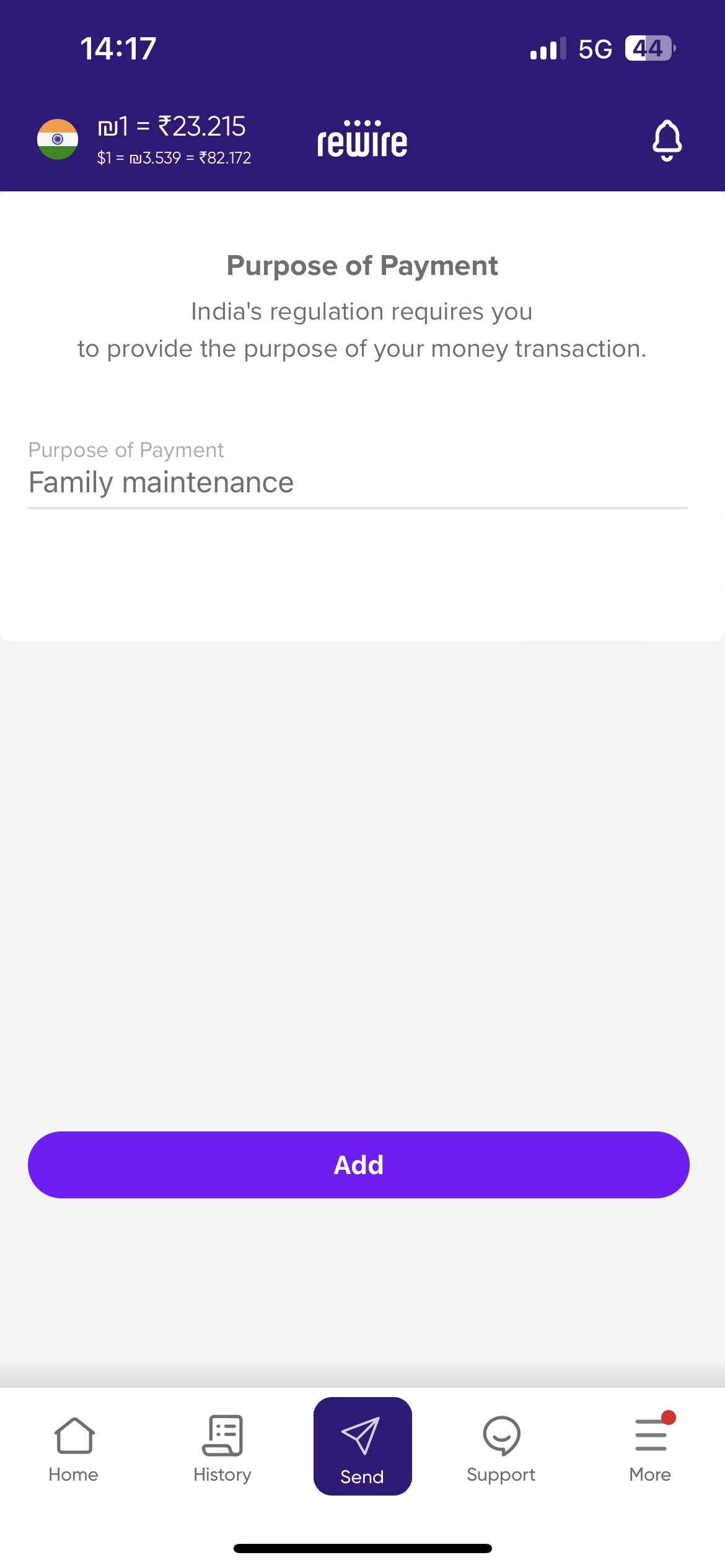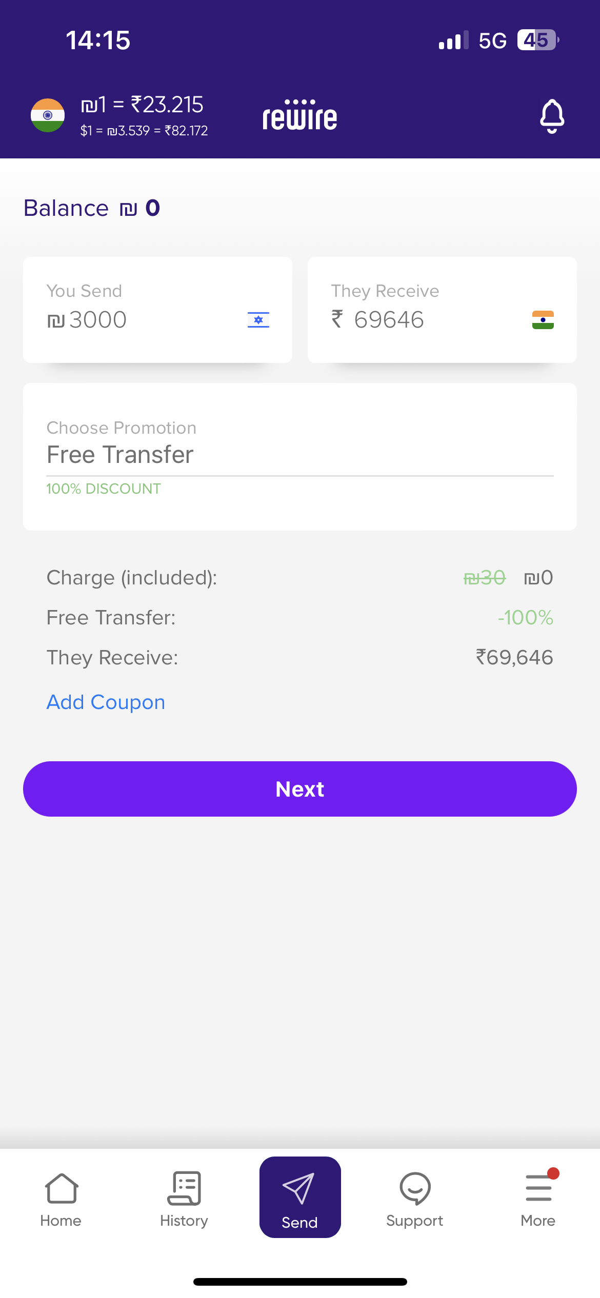 After the Send Money tab is open, enter the amount you want to send in the calculator. It can be in shekels or in your home country currency. You will see how much you will send based on the most recent exchange rate. Click on Next once you are ready.