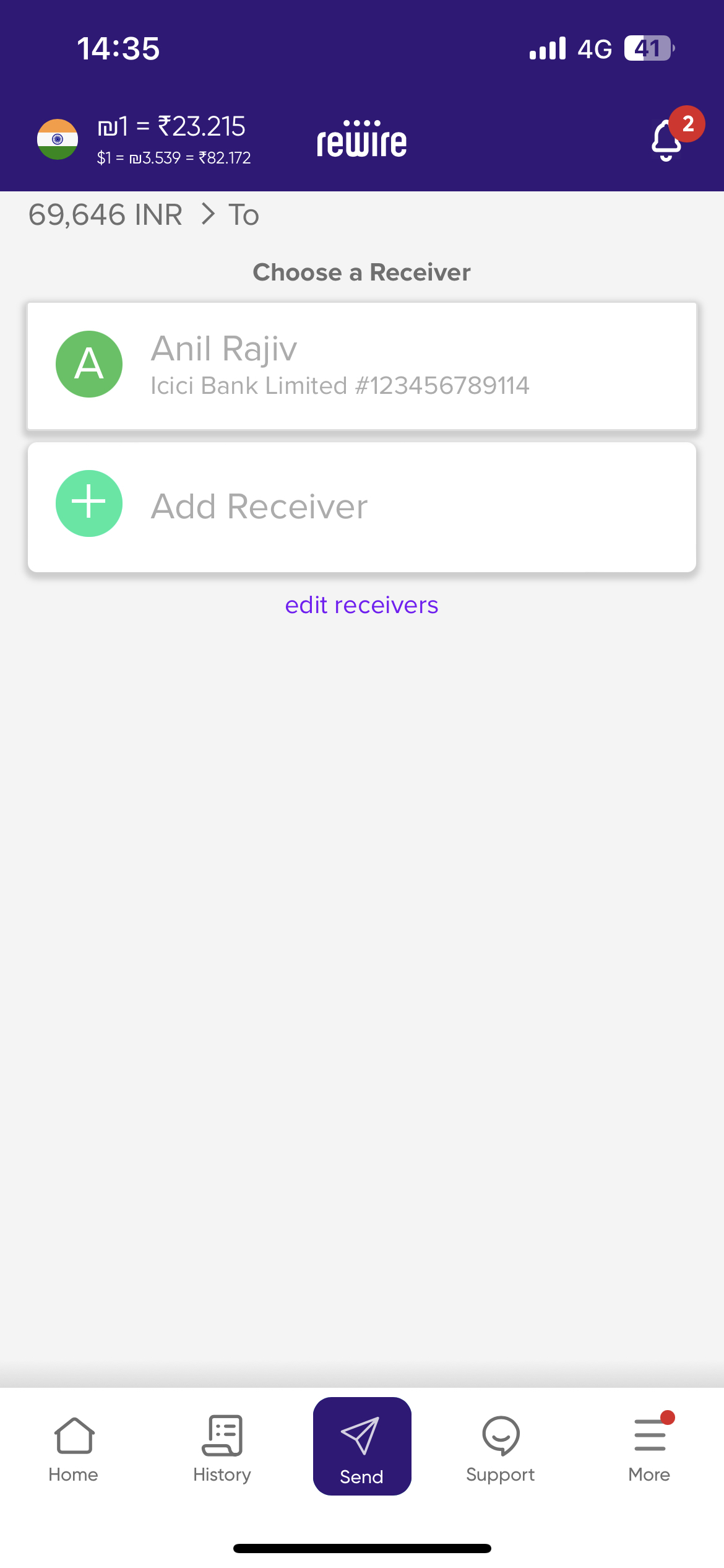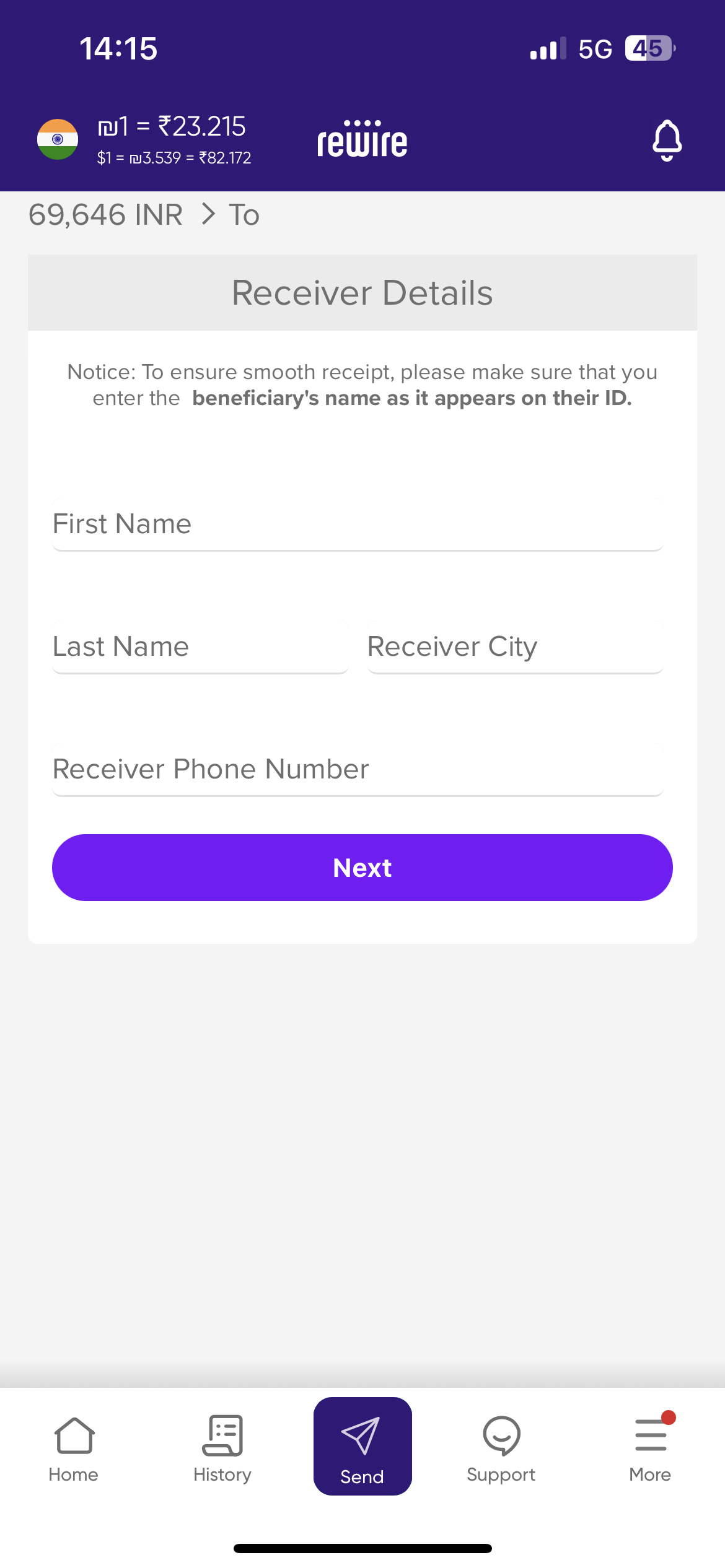 Enter the Receiver’s details, including the first name, last name, city, and phone number.