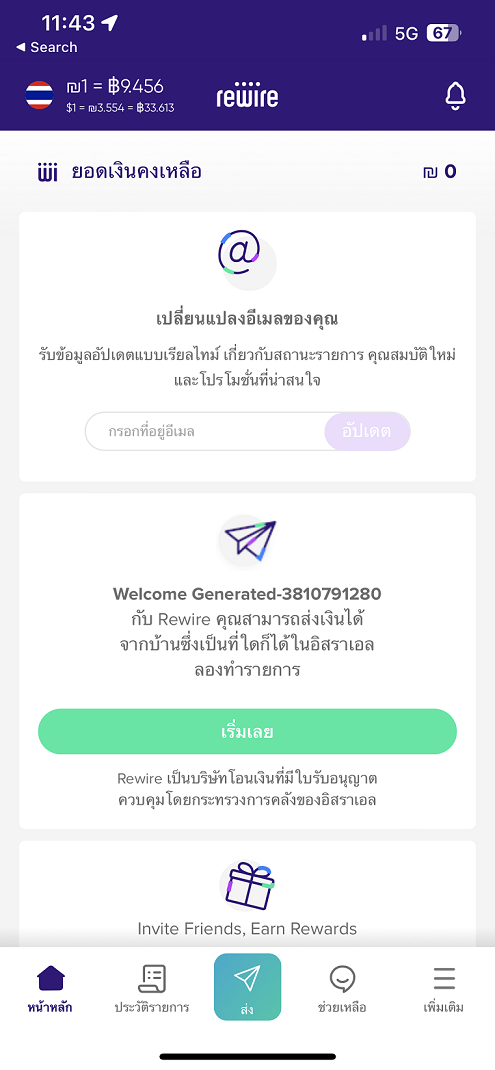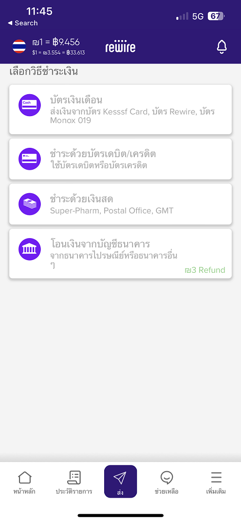 หลังจากคุณเข้าสู่ระบบแอปของคุณแล้ว ให้กด ส่งเงิน หรือ เริ่มต้น