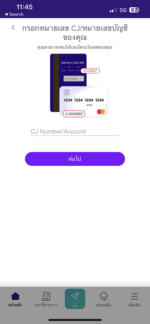 ใส่หมายเลขบัตรCJ/หมายเลขบัญชี