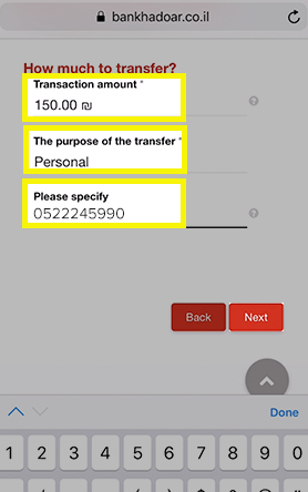 Once on the Send Money tab, enter the amount you want to send (in shekels or in your home country currency) into the calculator. You will see how much you will exactly receive based on today’s rate. Click on Next once you are ready.