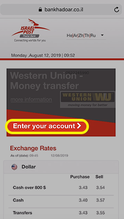 Enter www.bankhadoar.co.il and change the language on the top right corner to English then click Enter Your Account.