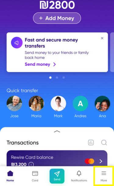 After logging in, tap the ‘More’ icon located on the right side of the menu on the home screen