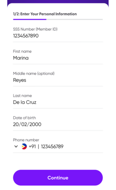 Enter your Social Security System (SSS) number and click 'Continue.' If you are unsure of your number, please contact the Philippine embassy in Israel for assistance