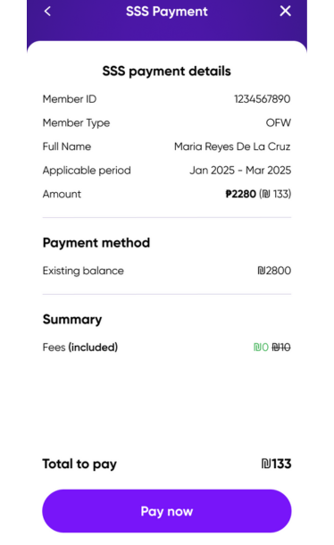 With Rewire, paying your Social Security System (SSS) contributions is quick and easy. We’ve partnered with Ventaja, an authorized company by the Philippine government, to simplify SSS payments for Overseas Filipino Workers (OFWs).