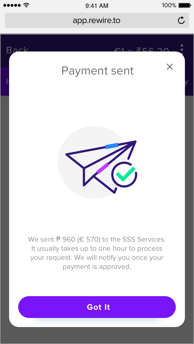 Rewire has partnered up with a Philippine government authorized company to collect SSS payments for OFW to make SSS payments hassle-free and free of charges. Meaning that you can now pay the SSS directly from your Rewire account online anytime, anywhere.
