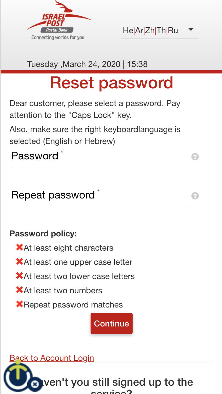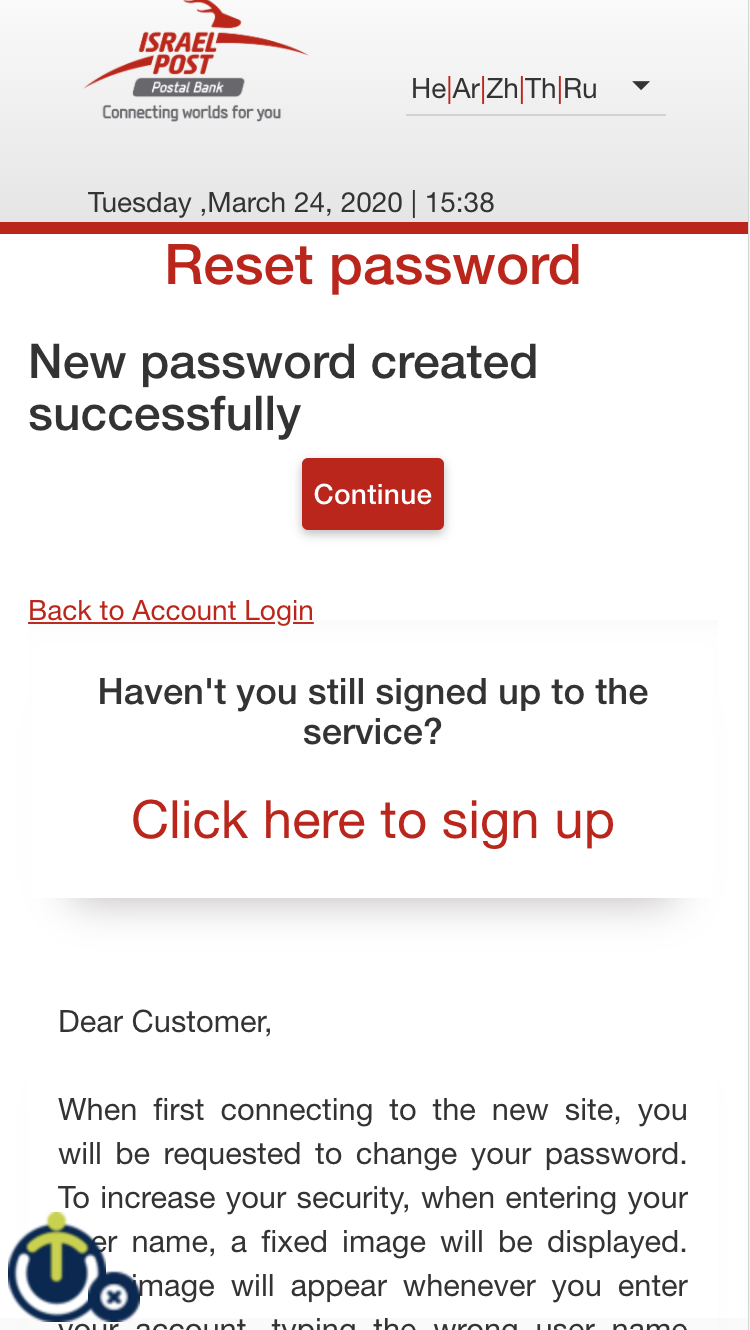Here is written your Username you need as the first detail for password retrieval. Go to https://www.bankhadoar.co.il/#/Login/ResetPassword and change the language on the top right corner.
