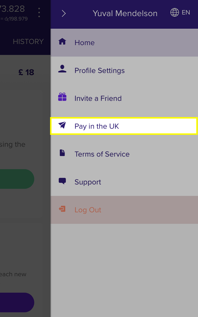 One the menu opens, select "Pay in the UK."