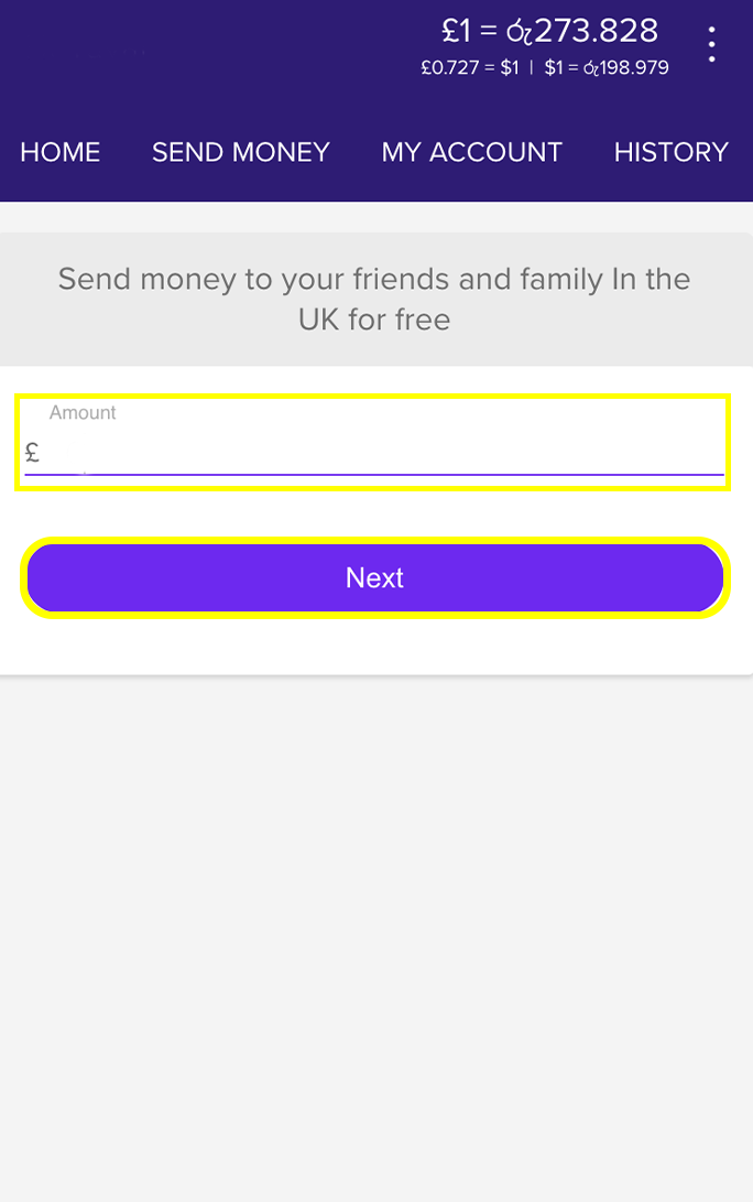 Enter the amount you wish to send, just make sure you have enough in your balance to begin with, or you need to load firstly. If you haven't yet loaded money to your Rewire account click here for a guide.