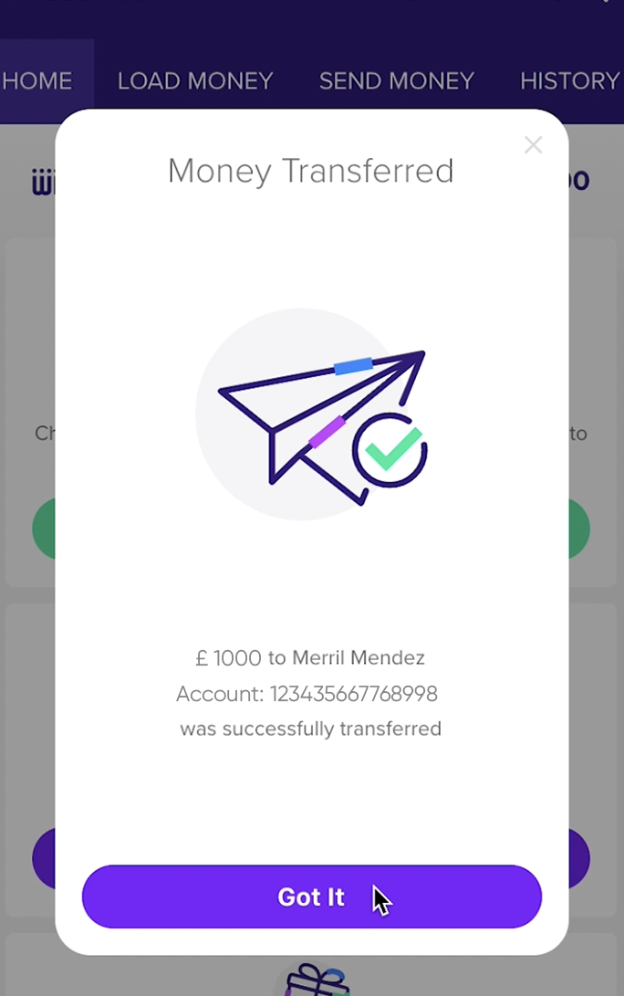 To do so, firstly, you have to load money (CREDIT/DEBIT CARD or INSTANT BANK TRANSFER) to your Rewire account alternatively you can. The transfer won’t work unless you have money in your balance.