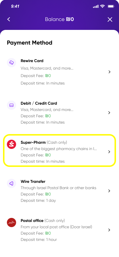 With nearly 300 Super-Pharm locations across Israel, adding cash to your Rewire account is quick and convenient.