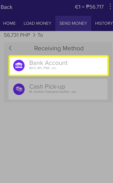 To send through cash pick-up instead, select the Cash Pick-up option if available.