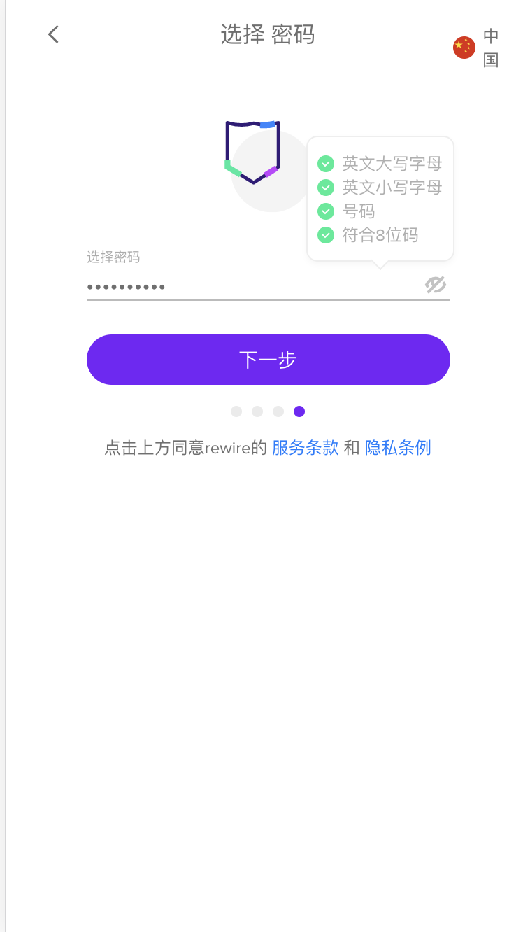 Choose a password minimum of 6 characters and click Next..
