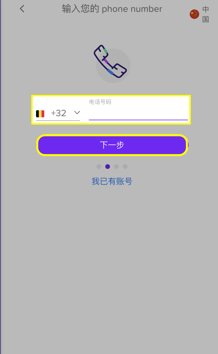 Choose the country dial code then fill in the rest of your phone number and click Next.