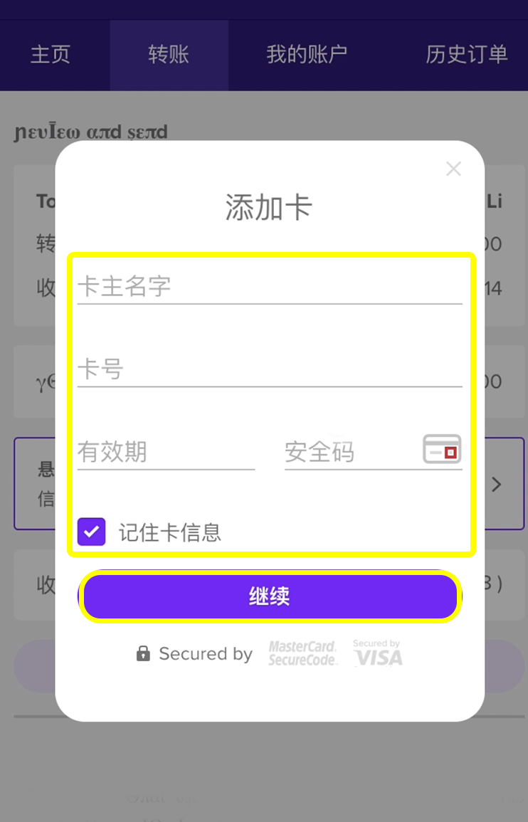For your convenience your card details can be saved for next time so you will simply be able to select the past account used to load.