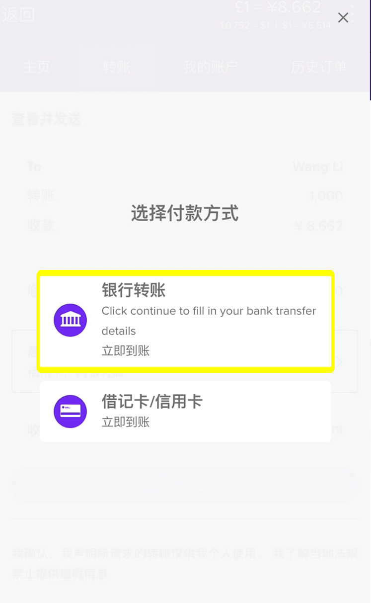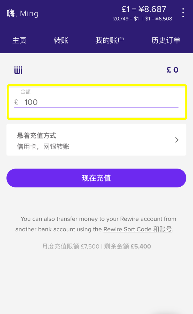 To load by transferring from Bank, send to your Rewire account from your other account. You will find the account number and sort code number in the top of your Account tab. You will have to Copy the account number of your Rewire account. You then have to open a new window of your bank's page in order to make the transaction to your Rewire account.