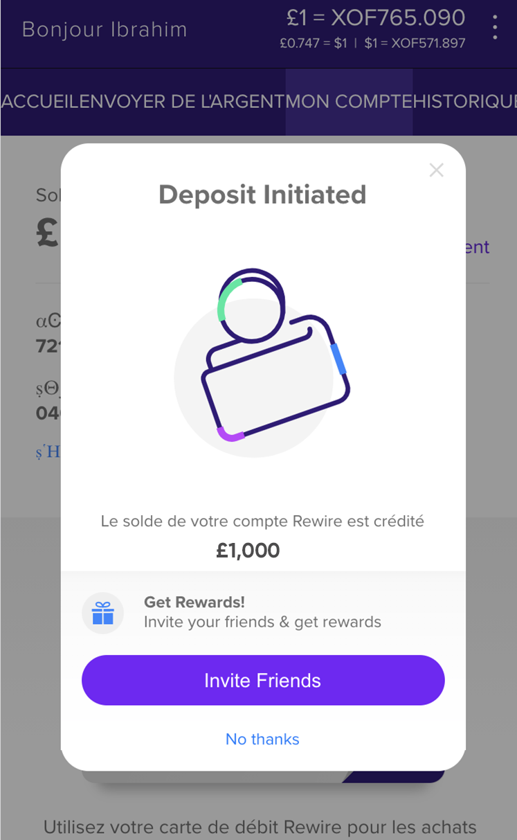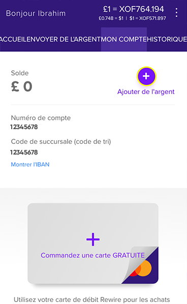 Une fois que vous avez du solde, vous pouvez envoyer de l’argent à l’étranger, et utiliser le même solde pour votre débit Rewire MasterCard.