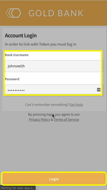 Entrez votre nom d'utilisateur bancaire puis votre mot de passe et cliquez sur Login