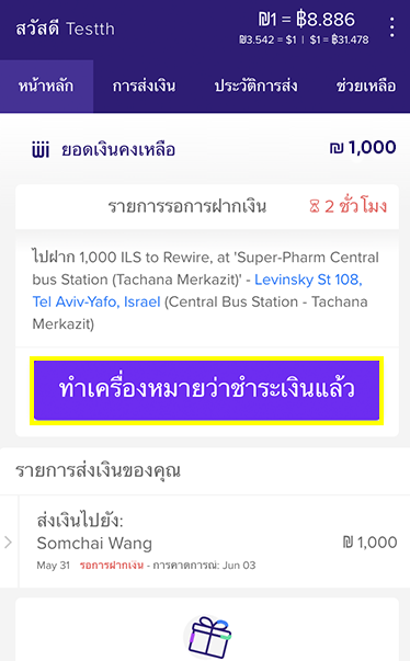ผู้รับที่ไทย จะได้รับเงินภายใน 3 วันทำการ เมื่อเสร็จสมบูรณ์ก็จะบอกว่าการชำระเงินเสร็จสมบูรณ์