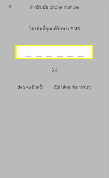 คุณจะได้รับโค้ดทางข้อความ เพื่อยืนยันบัญชีของคุณ ใส่โค้ดที่ได้รับและกด ถัดไป
