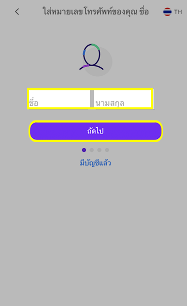 ป้อนชื่อ-นามสกุล เป็นภาษาอังกฤษ และกด ถัดไป