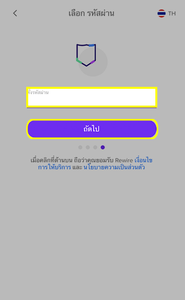 ไปที่ https://app.rewire.to/#/signup เเพื่อเริ่มต้น หากไม่ใช่ภาษาไทยไปที่ไอคอนรูปโลกด้านบนขวามือแล้วคลิก จากนั้นเลือกภาษาไทย คุณสามารถดาวน์โหลดแอพได้จาก Apple App Store หรือ Google Play store.